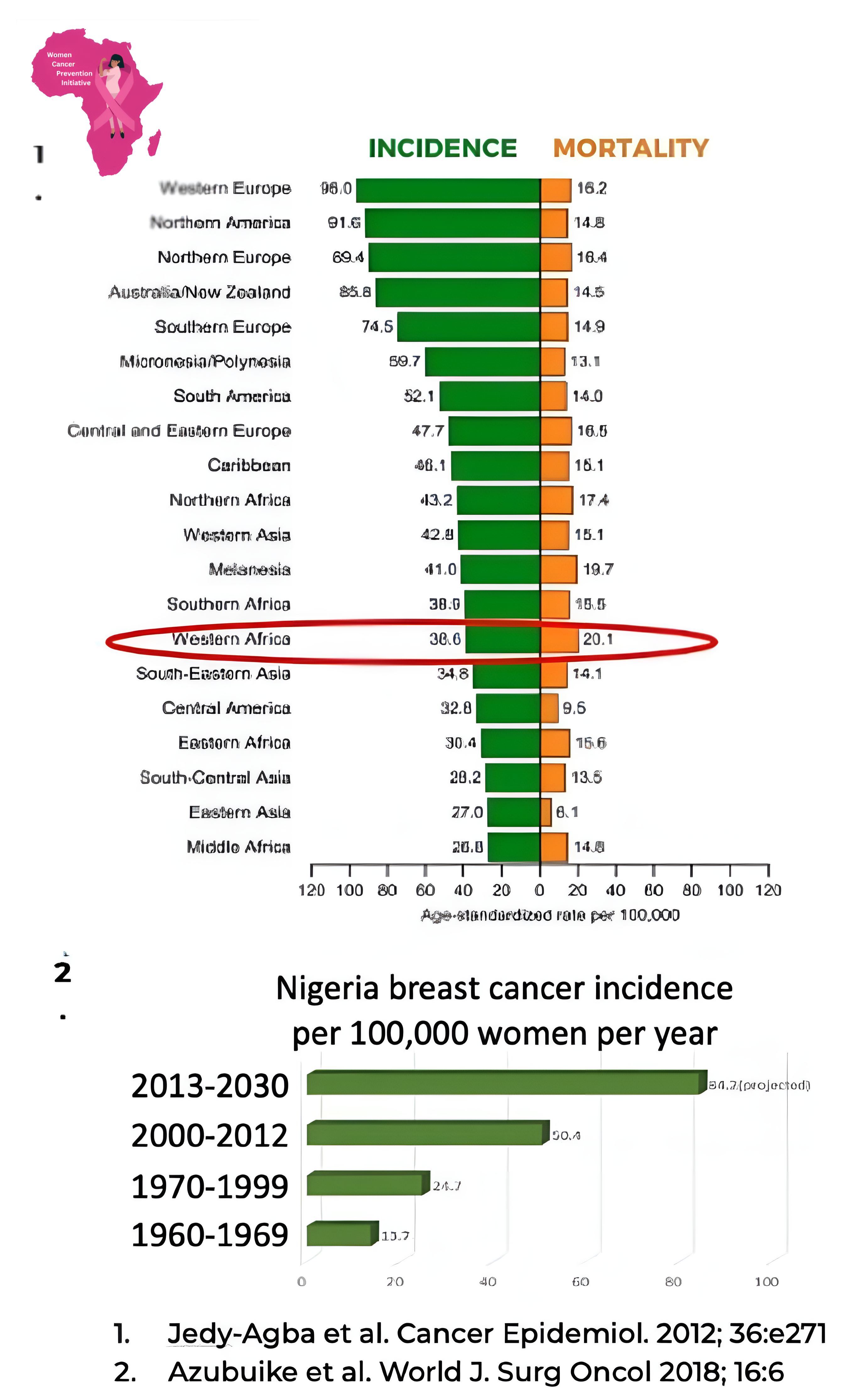 The steadily increasing mortality rate in Nigeria (and her neighbors in sub-Saharan Africa) is due to increased incidence1, lack of early detection programs, and therefore late-stage presentation of the disease, with less likelihood for cure.